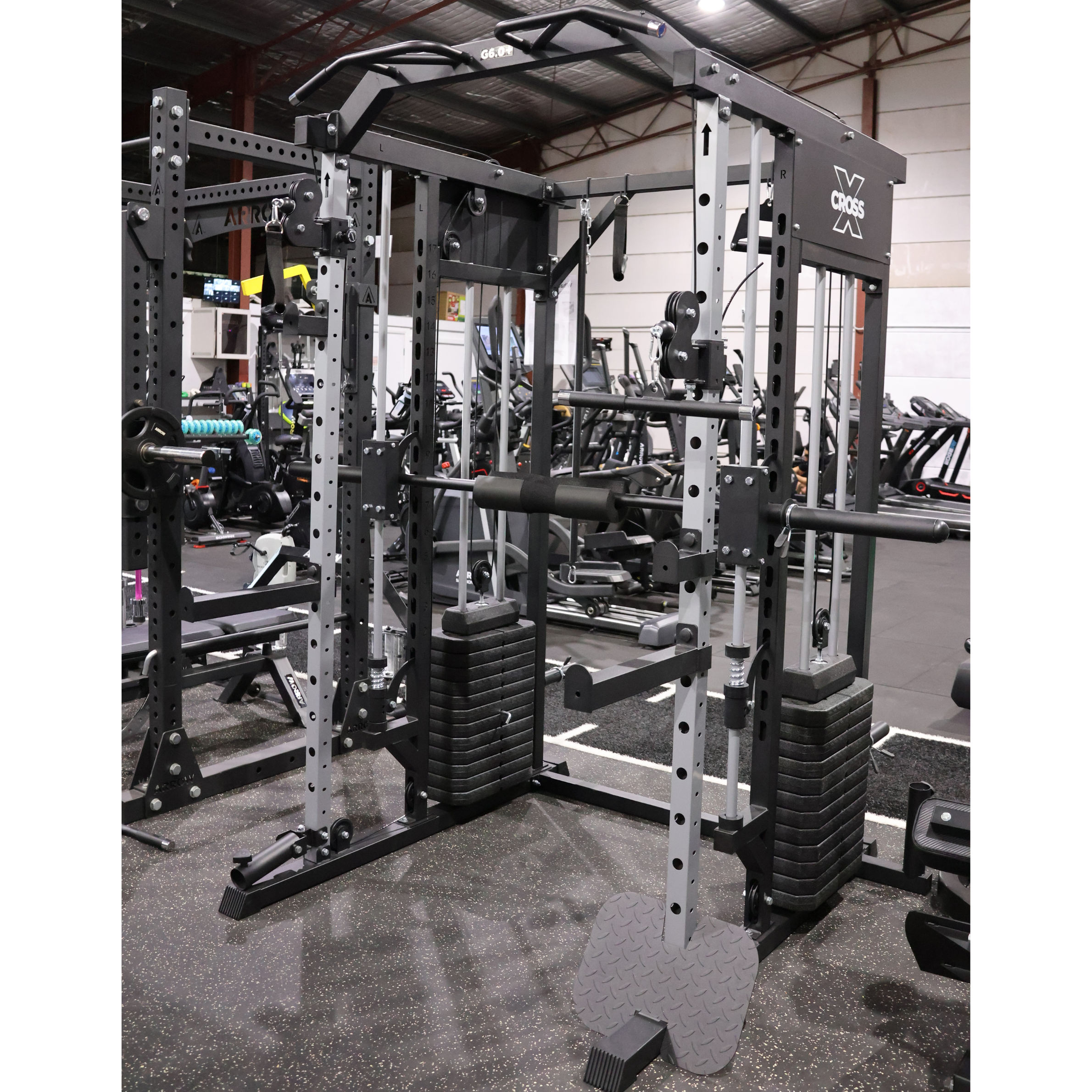 The ARROW Cross X G6.0+ is a complete training solution that combines a Smith machine, power rack, and functional trainer into one all-inclusive unit. Whether you're strength training, isolating muscles, or moving through dynamic full-body workouts, this system delivers it all without compromise.