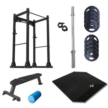 ARROW X6 Power Cage + 100kg Weights, Barbell, Bench & Flooring